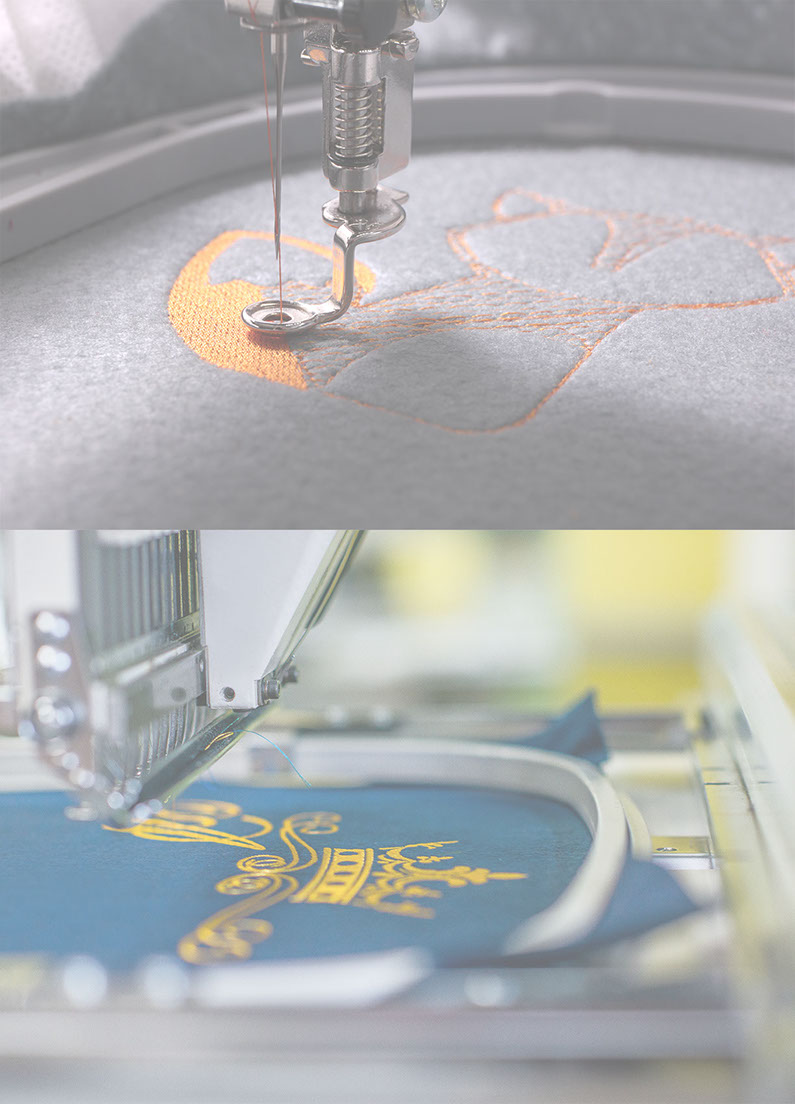 Embroidery is the process of stitching your design into the garment using an industrial embroidery machine. Your logo is taken and redrawn into a stitched design a process which is known as digitizing. This then enables our embroidery machines to read your logo file and stitch the design onto the garment.